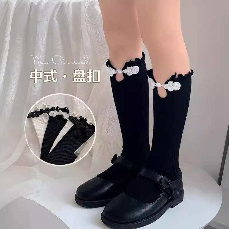 ミレニアムギャルy 2k中国風盤は透かし彫りのキクラゲの中筒の靴下の日系のロリータjkのファッションの足の靴下を掛けます。