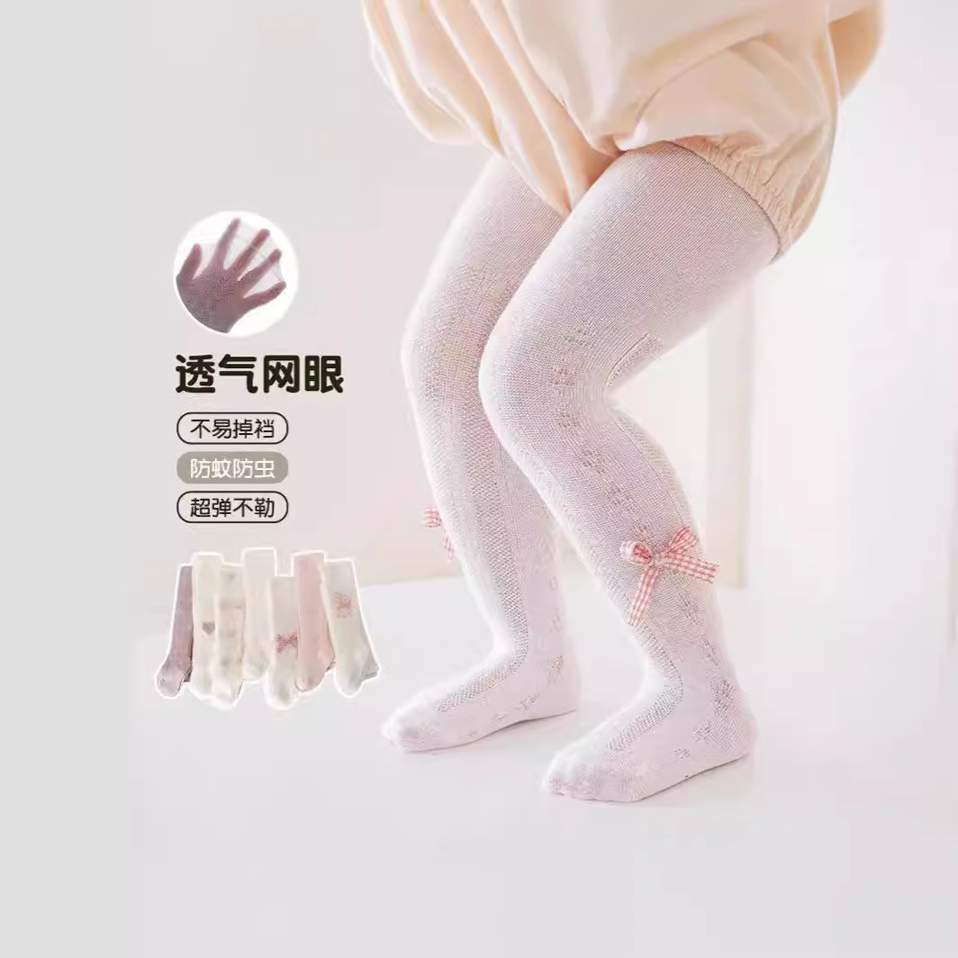 子供用タイツの夏の薄い女の子の甘いロリータ風の蝶結びの網の目の女の子のレギンスの防蚊靴下