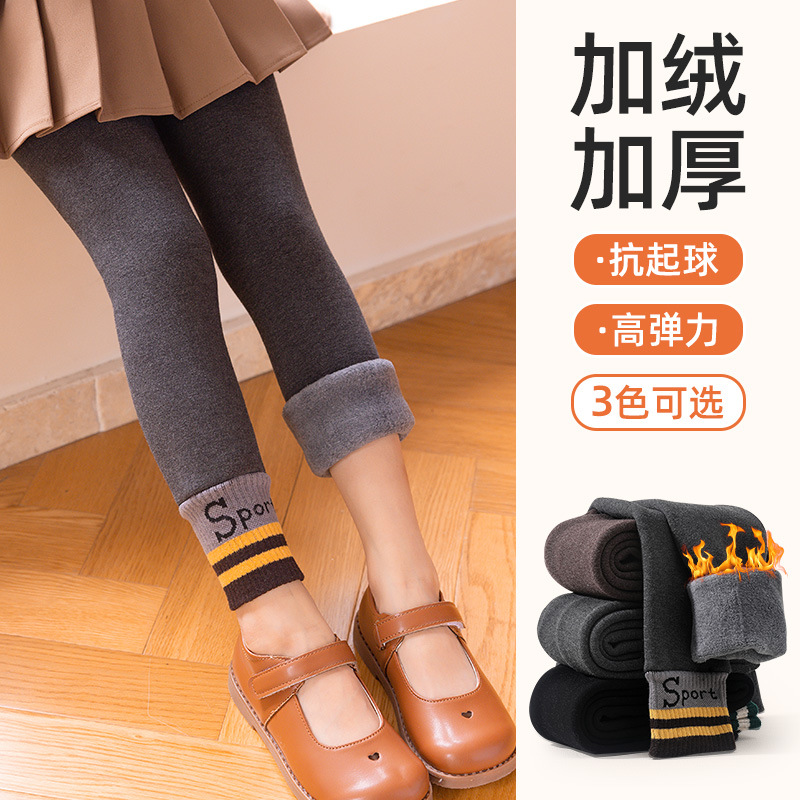 2024女の子の制服神器秋冬子供のレギンス綿のズボンの保温ズボンのウールとベルベットの厚い綿のズボン