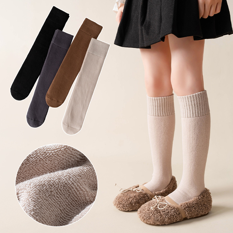 ふくらはぎの靴下の子供は秋の冬に厚い保温毛輪が膝の靴下の純色の日本jkストッキングの膝の高い靴下を保護します。