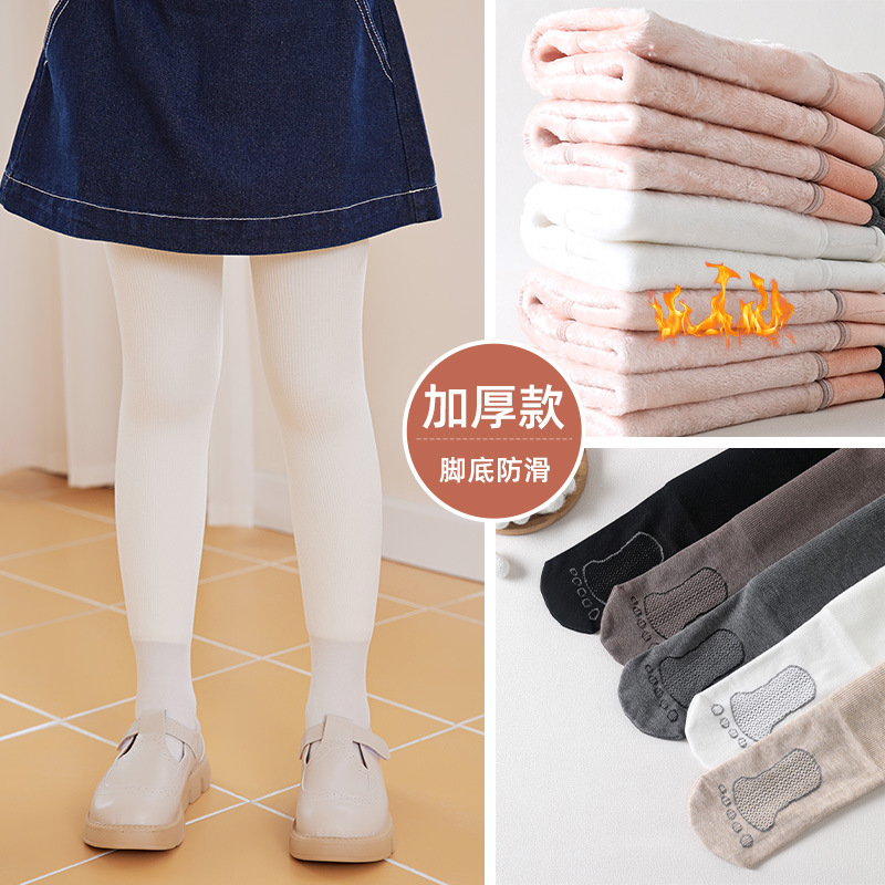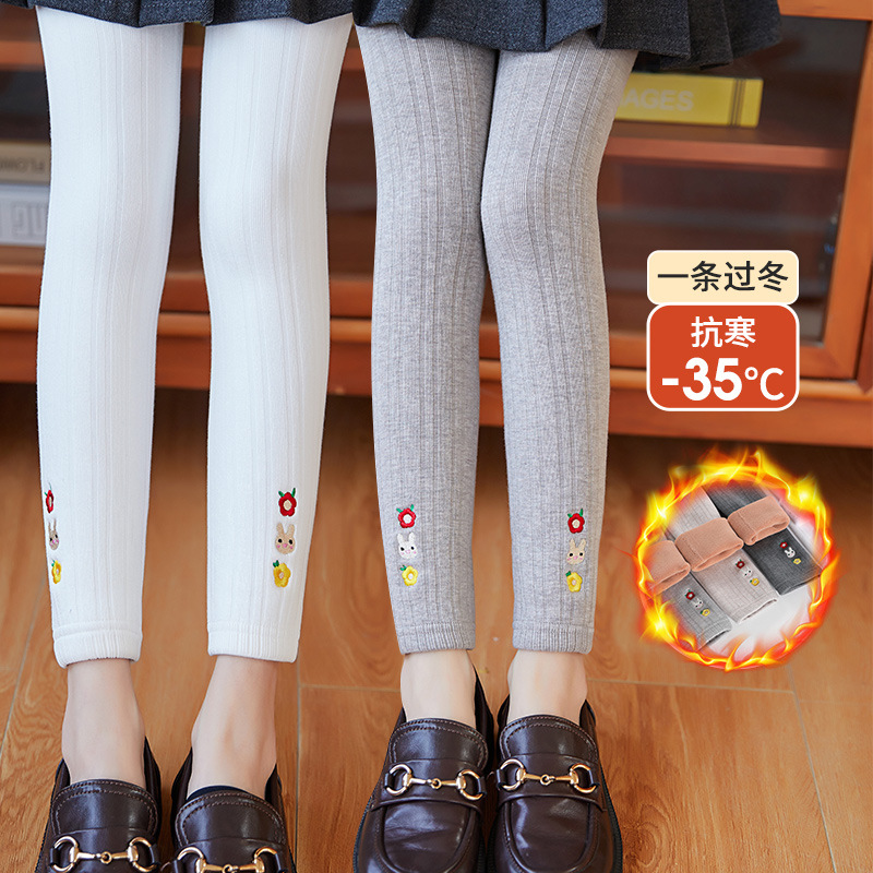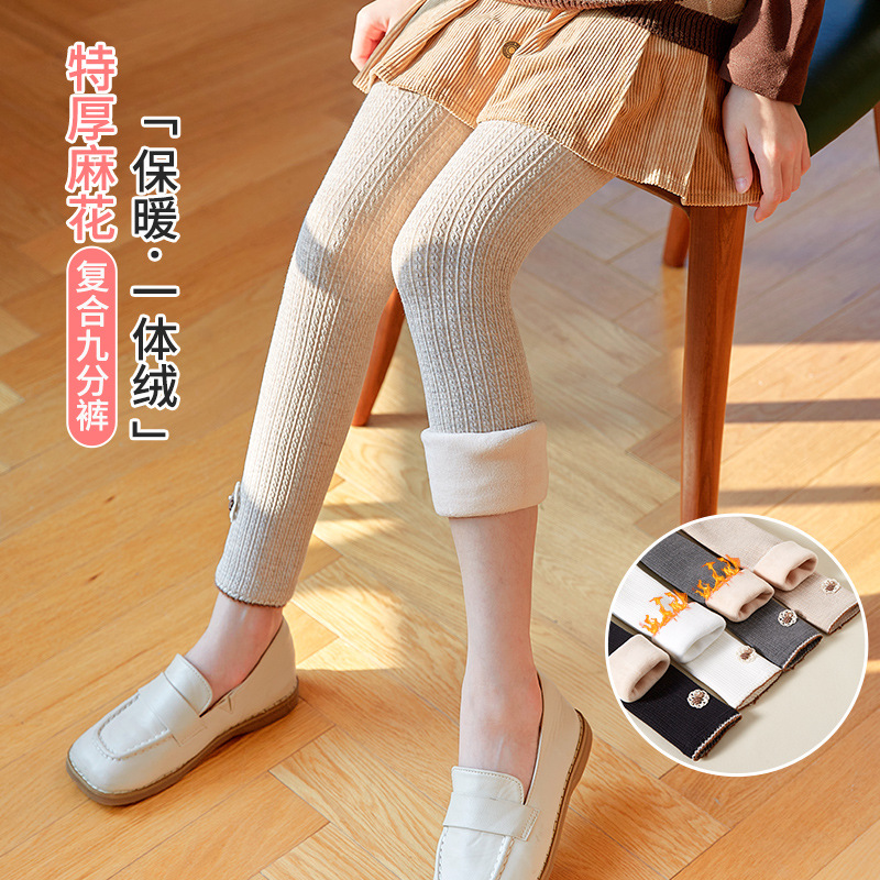 女の子のレギンス冬の子供の厚い洋気とベルベットの女の子のタイツと麻模様の白い保温タイツ