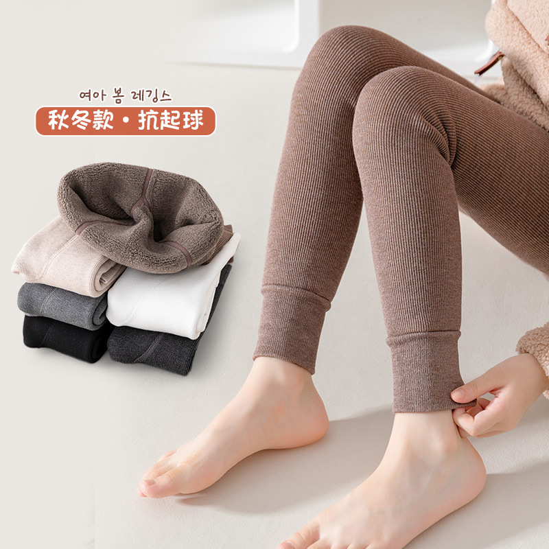 女の子の9分のズボンの秋冬の新型の縦縞の純色のレギンスとベルベットの厚い保温のズボンの靴下の一体のズボン