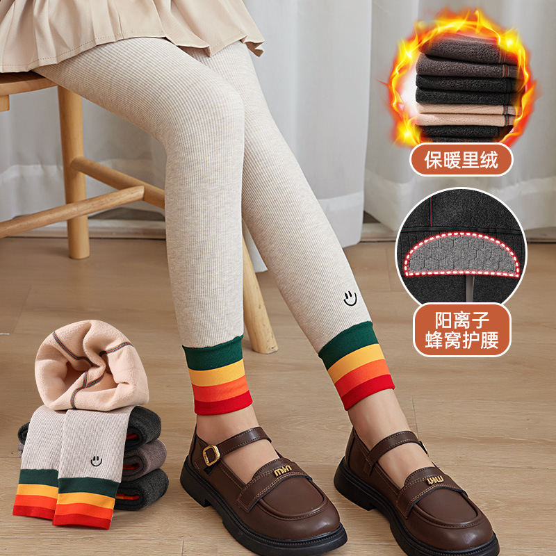 子羊の子供の一体ズボン冬の新しいベルベットの子供のレギンス虹の縞の笑顔の子供のストッキング