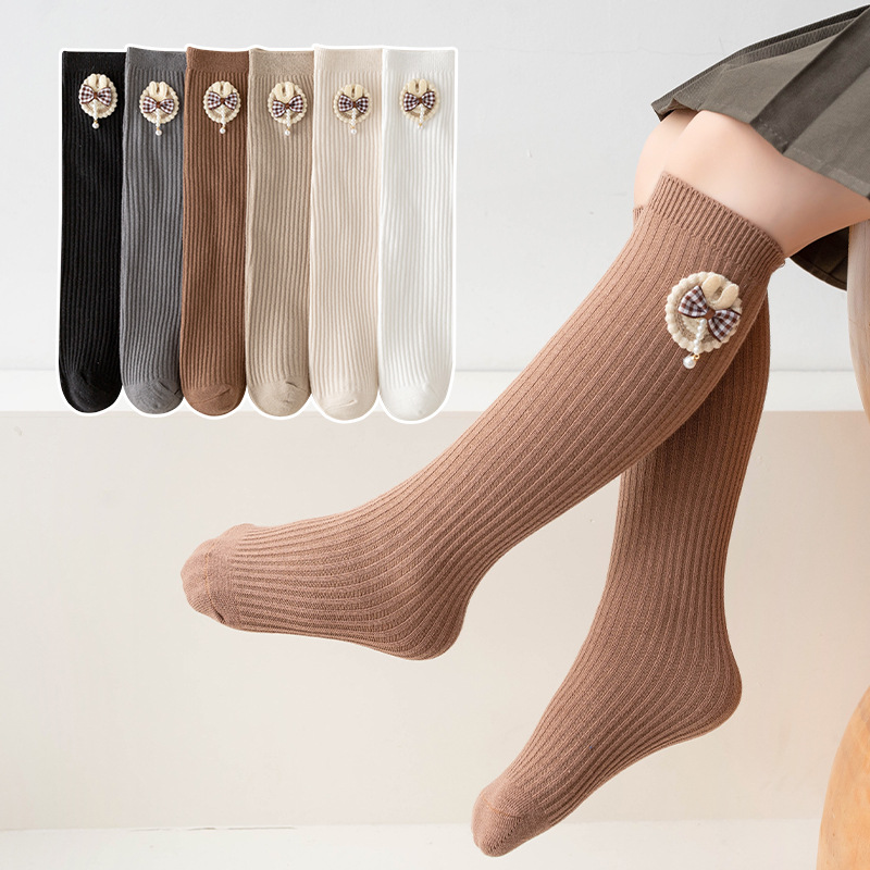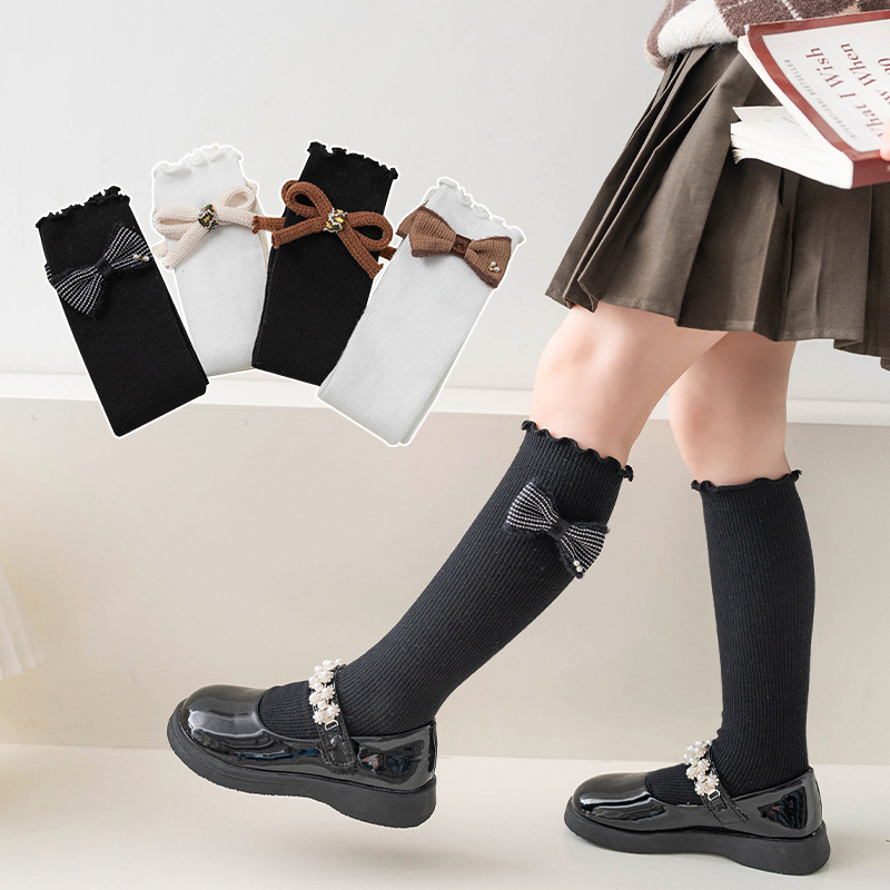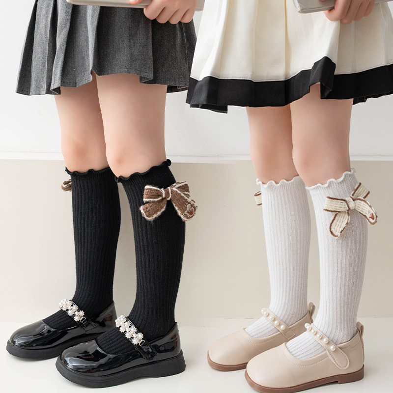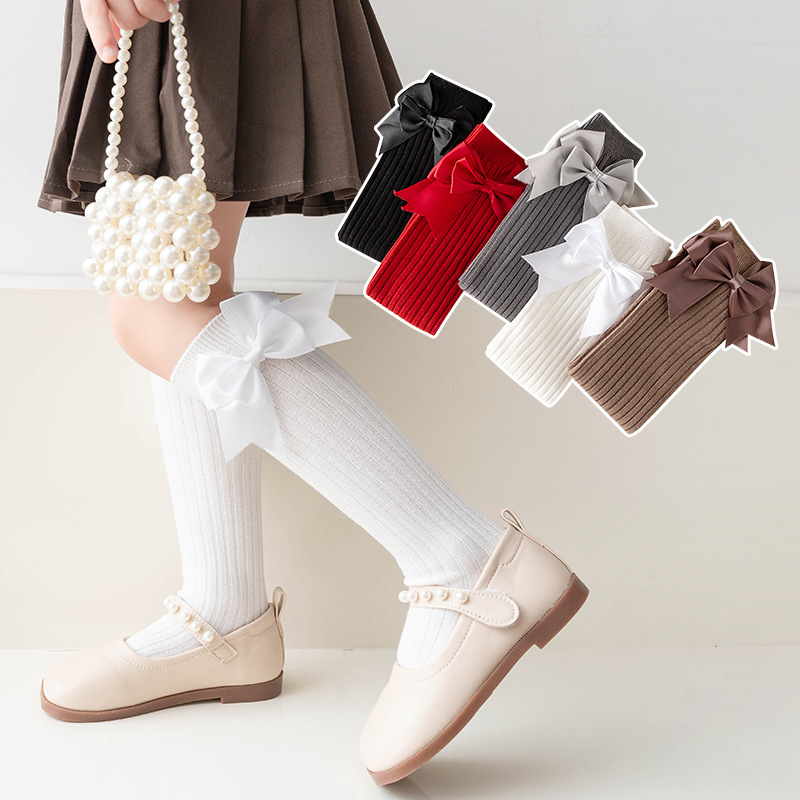 子供の靴下春秋の子供のストッキングの王女の靴下は膝の蝶結びの靴下の韓国版の中筒の靴下を積みます。