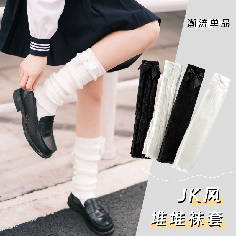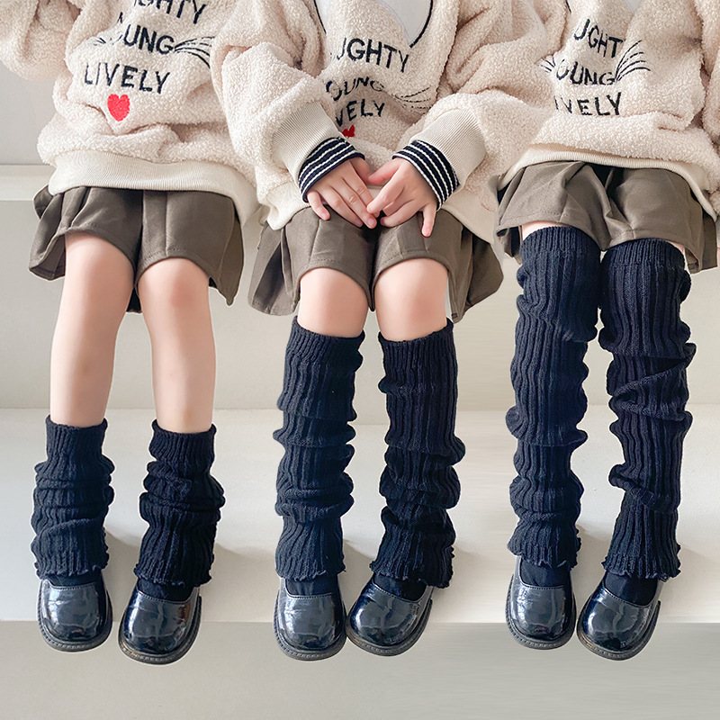 縦編み靴下カバー保温jk少女日系学院風膝保護ブーツカバー膝親子積み上げ靴下