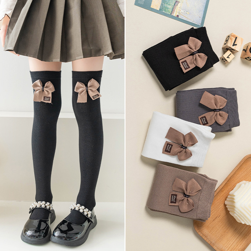子供用靴下黒jk太もも靴下春秋型抗起球リボン真珠ins潮ストッキング高筒膝
