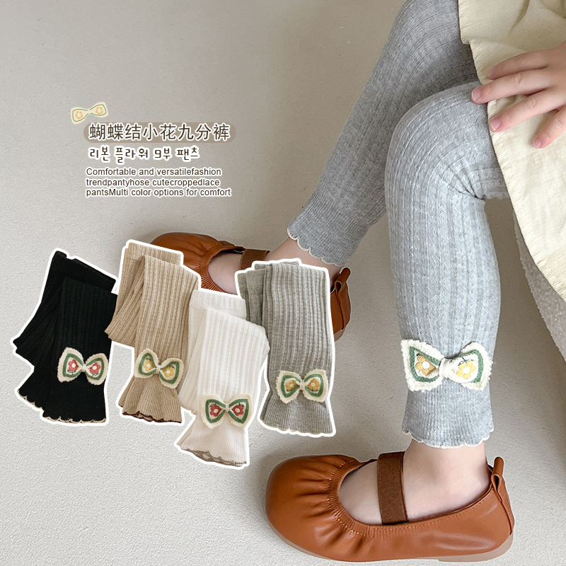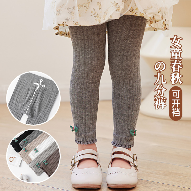 女の子のレギンス春秋タイプの子供の赤ちゃんはズボンの蝶結びの9分のズボンの子供のズボンを開くことができます。