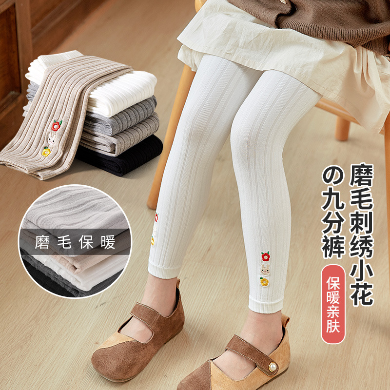 子供のレギンスと春の冬の薄い絨毯の中で厚い金の9分のウサギの刺繍の外でベルベットを着て毛の女の子のタイツのズボンを磨いています。