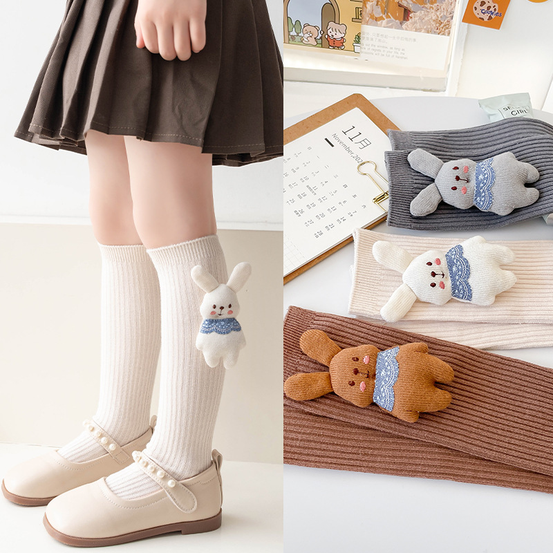 秋冬の子供の靴下はウサギの純色の靴下を刺繍します。