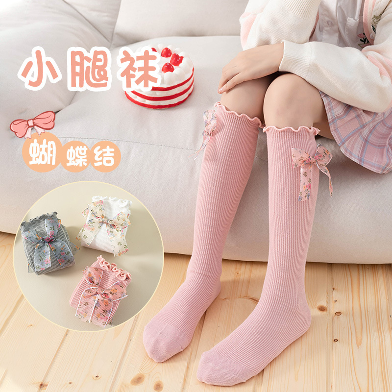 2023春夏新作スタッキングソックス精練コットンレトロ蝶結びjkロリータ女児プリンセスミディアムソックス