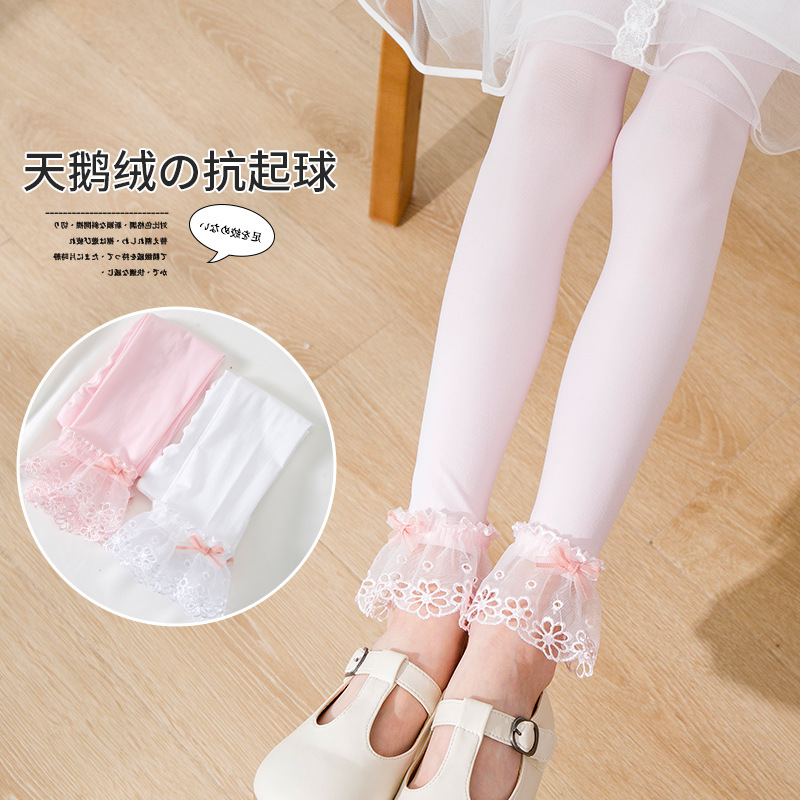 女の子のレギンスの外は春秋の薄い金のクラウンの熊のレースのズボンの靴下の中の子供の9分のズボンの子供のズボンを着ます。