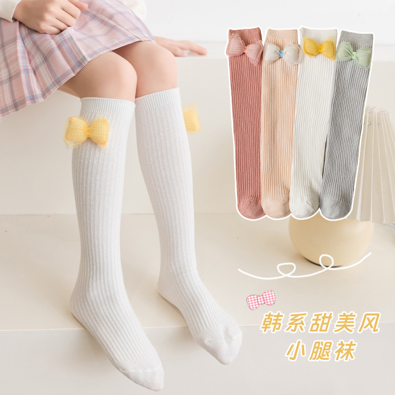2023春秋新商品韓国の女の赤ちゃんのストッキングの純色の蝶結びはjk王女の綿の靴下の女の子の靴下と関係がありません。