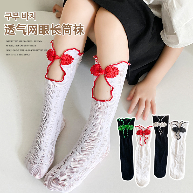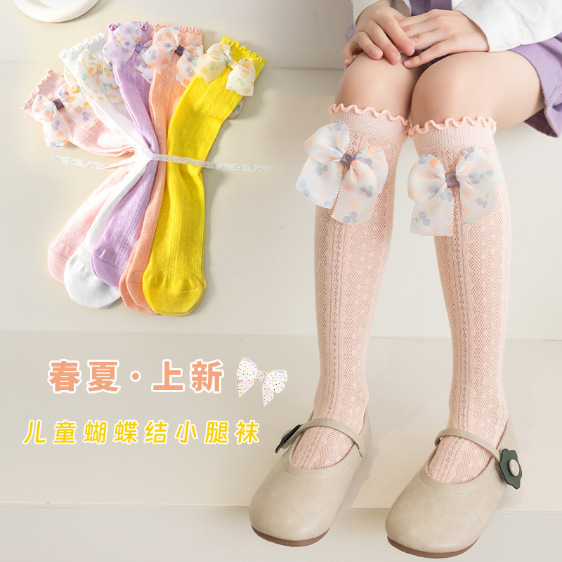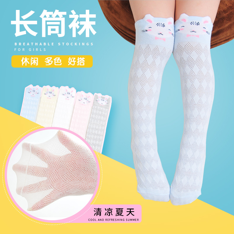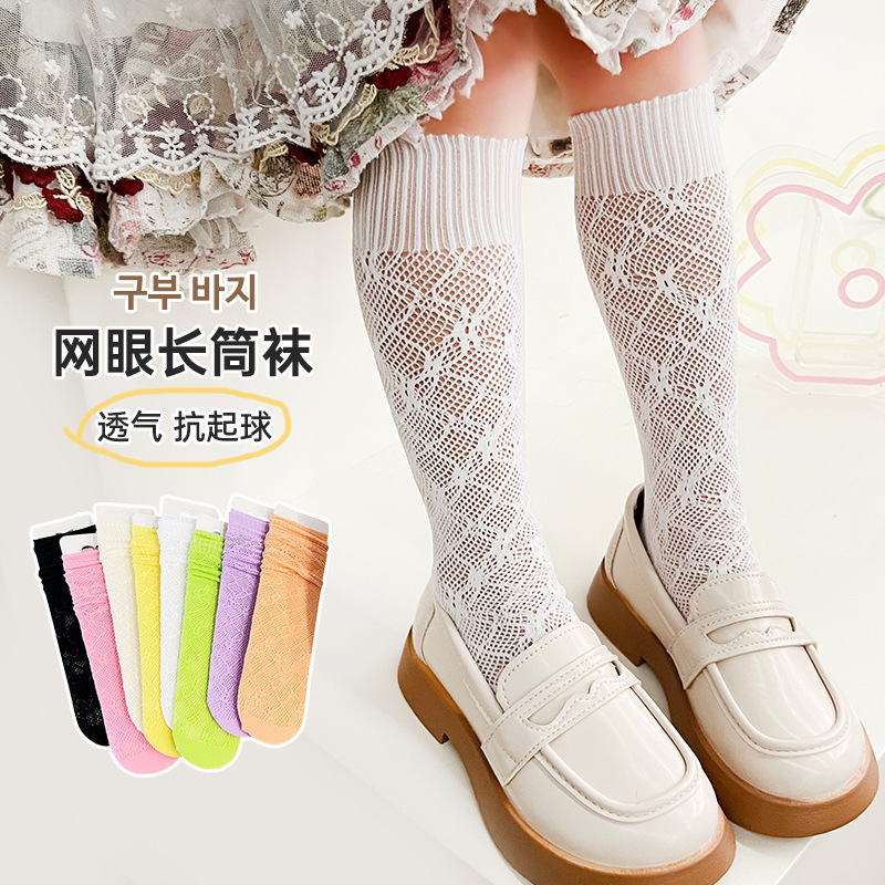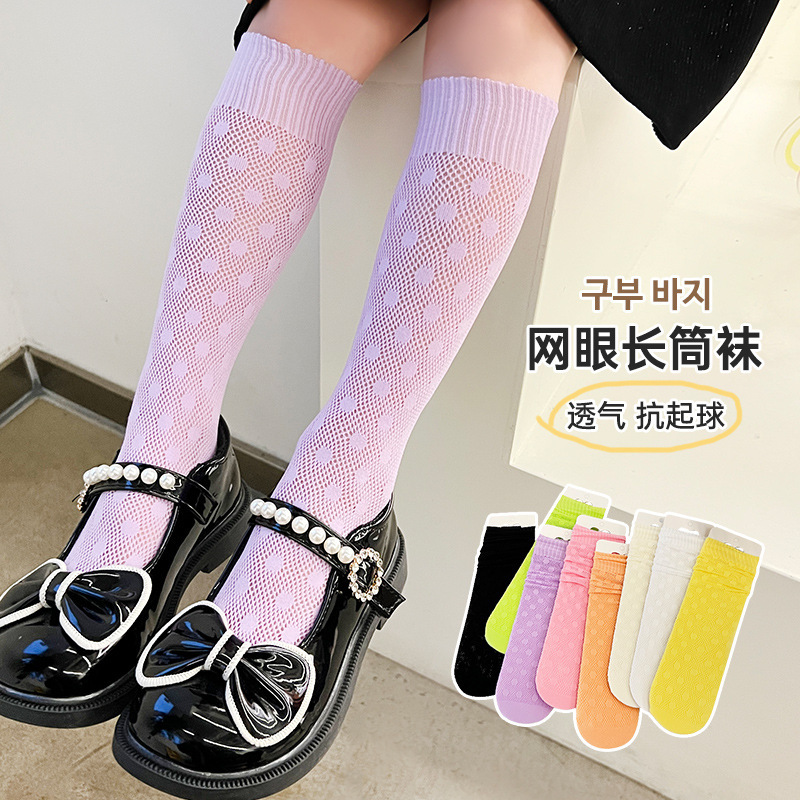 夏の女の子の中筒靴下カラーメッシュ子供のふくらはぎの靴下
