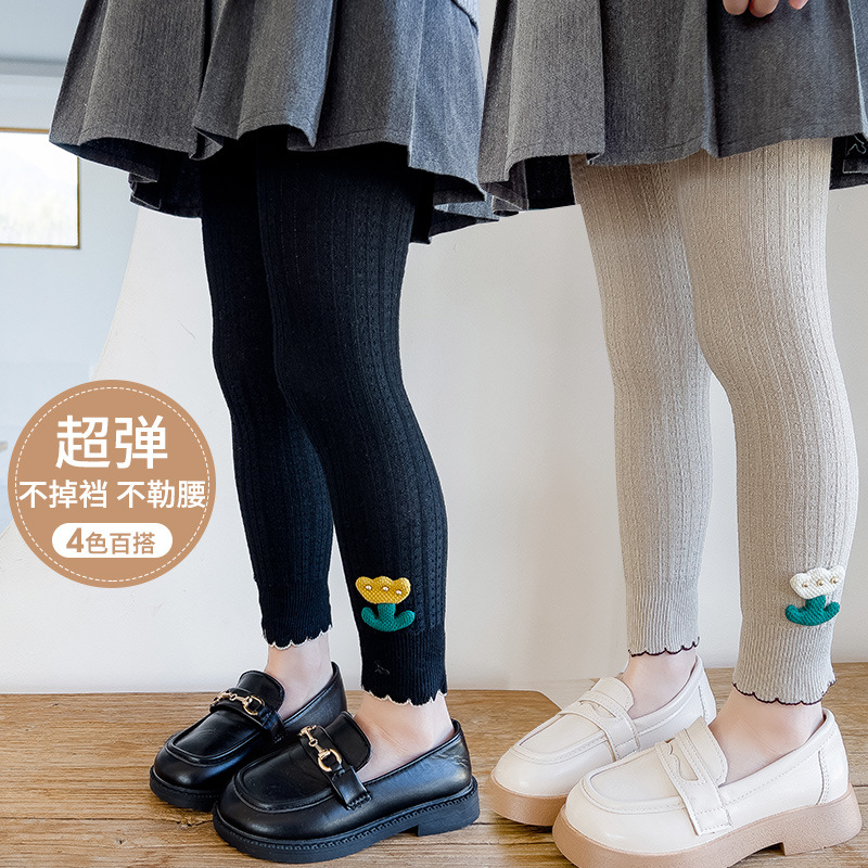 2023春夏の子供のレギンスのかわいいチューリップの子供の9分のズボンのレースの女の子はズボンの靴下の外で代行を着ます。