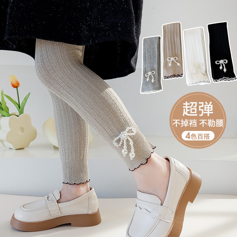 2023春夏新作韓国版真珠蝶結び子供用レギンス