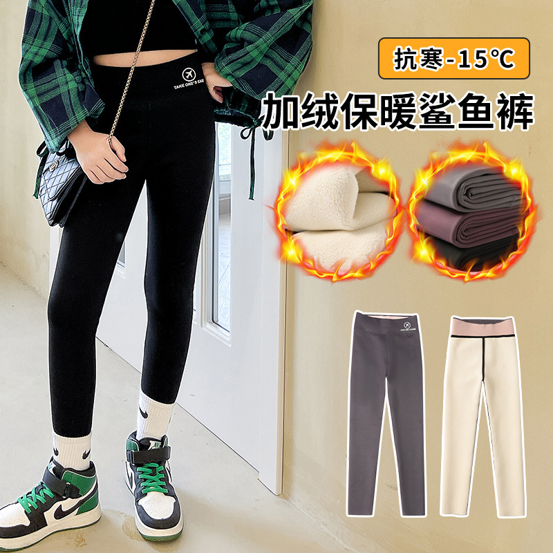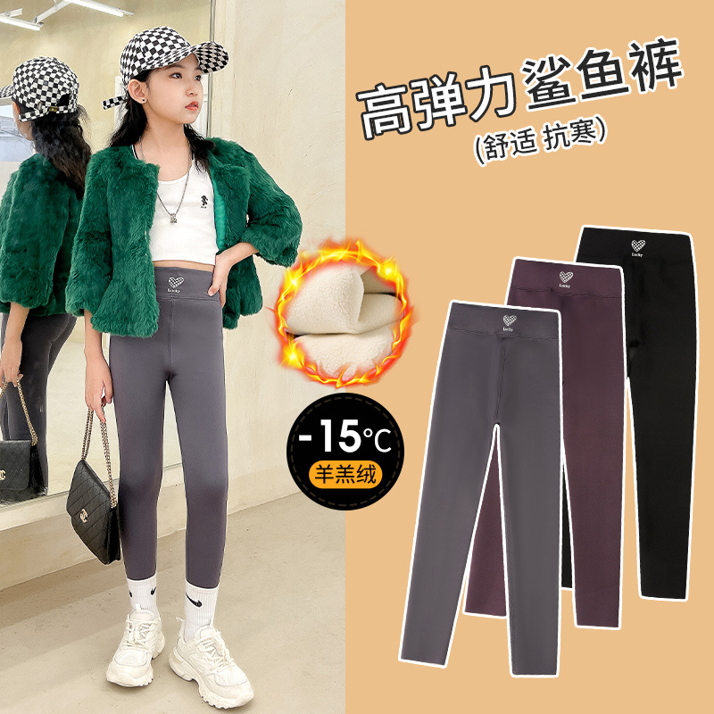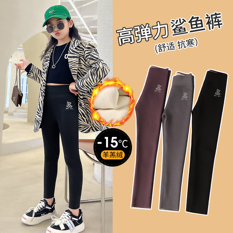 秋冬の外着の女の子のサメのズボンの中の大きい子供のベルベットの厚い底のズボンの羊の小毛の保温のズボンの韓国版