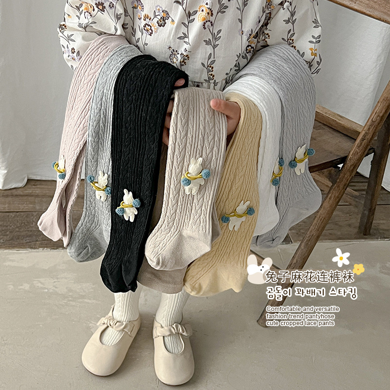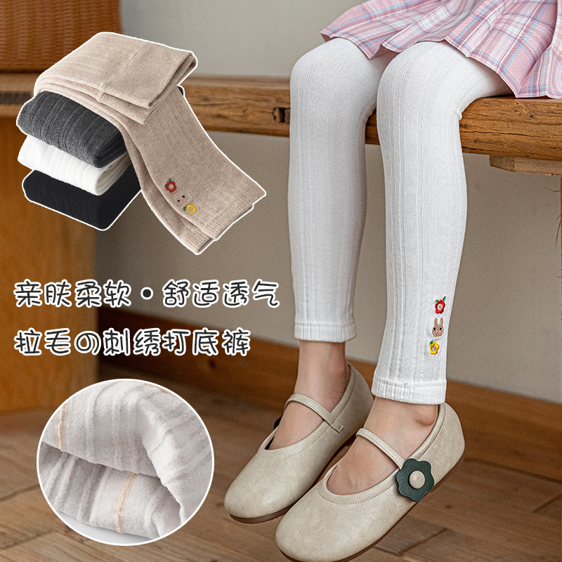 子供のレギンスの秋冬刺繍のウサギの毛を磨いています。
