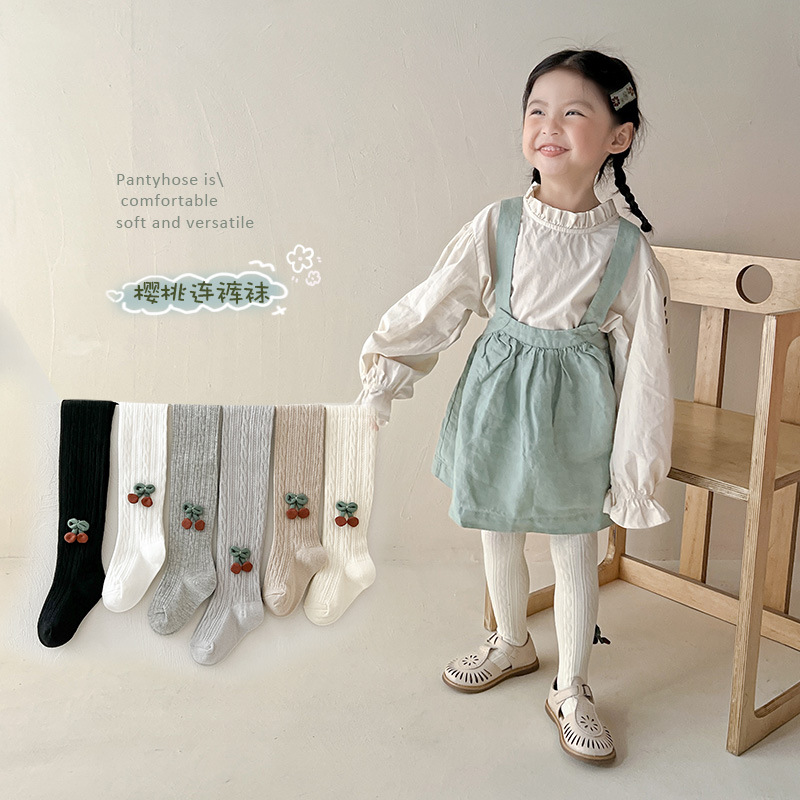 23新型の女の子のレギンスの精練綿の赤ちゃんの純色の春秋のさくらんぼの蝶結びの子供のズボンの靴下の王女