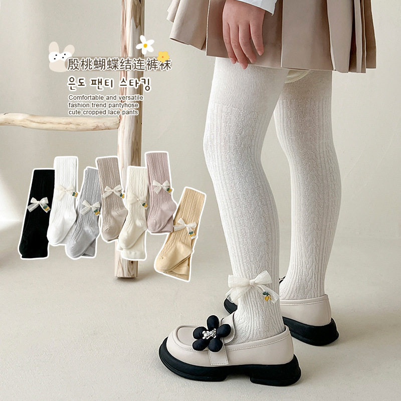 子供のパンストの女の子の子供の外に白い王女の蝶結びの女の子のレギンスの春と秋の純色のさくらんぼを着ます。
