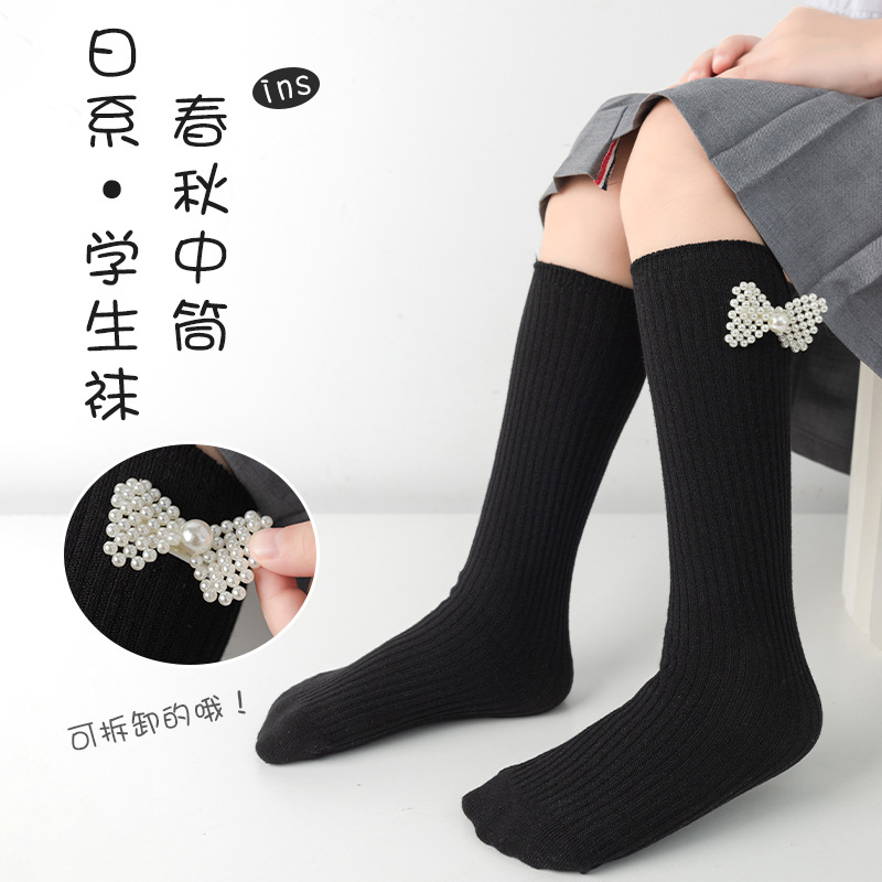 子供の靴下の女の子のストッキングの真珠の花の双針の綿の精練綿の中で靴下の女の子の普通の靴下は膝の公を過ぎます。