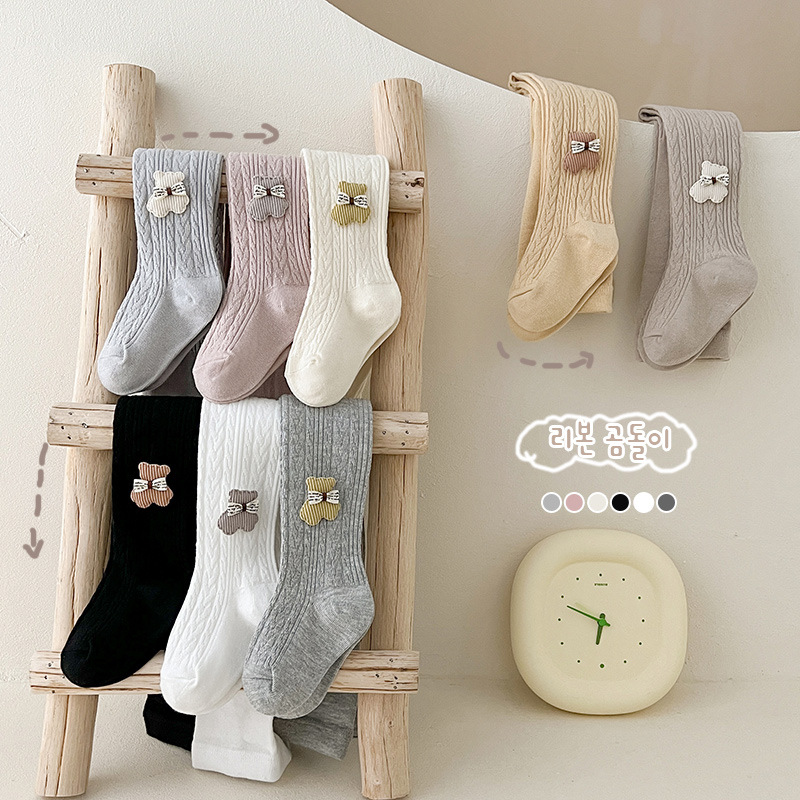 春秋タイプの子供用靴下麦穂麻花の赤ちゃんのワンピースのズボンの靴下の女の子の漫画の熊のレギンスの子供の靴下