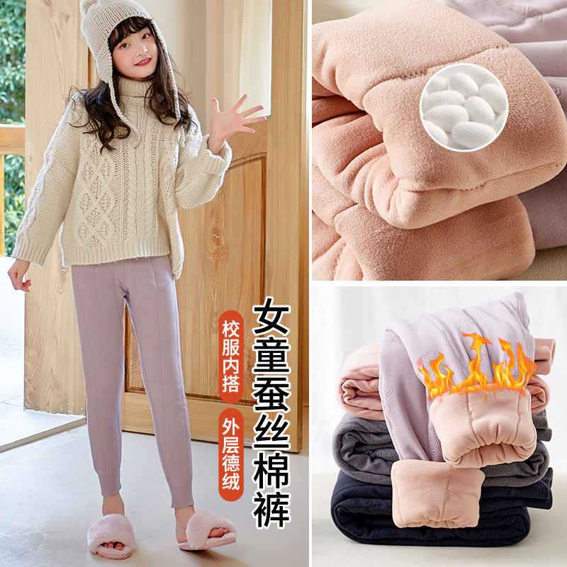 冬の子供のレギンスの中で寒さに強い保温三層を着て、腰の高いアニメの9点を厚くして、制服を着て保温します。