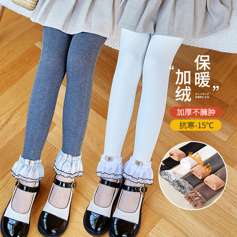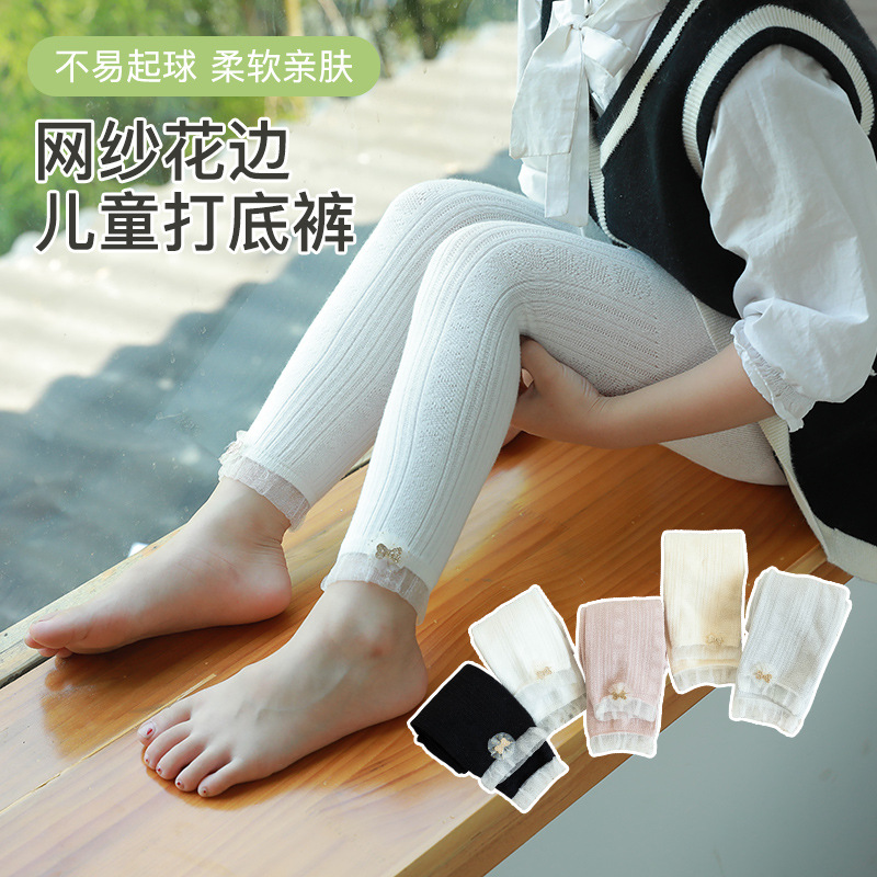 女の子のタイツの秋の薄いタイプの精練綿の通気性の子供の薄いタイプのレギンスのレースの小さいジャカードのタイツの外で着ます。