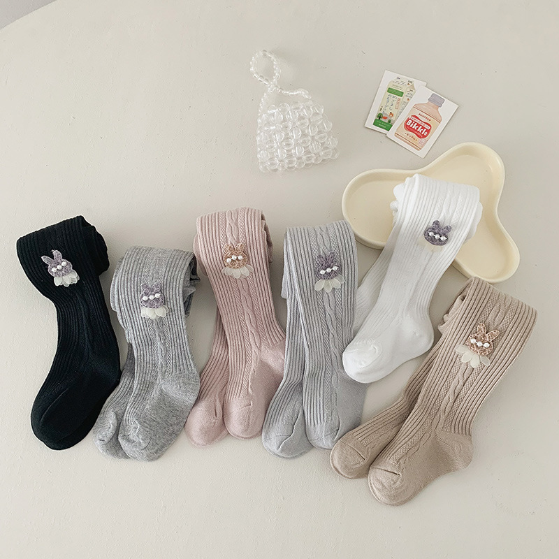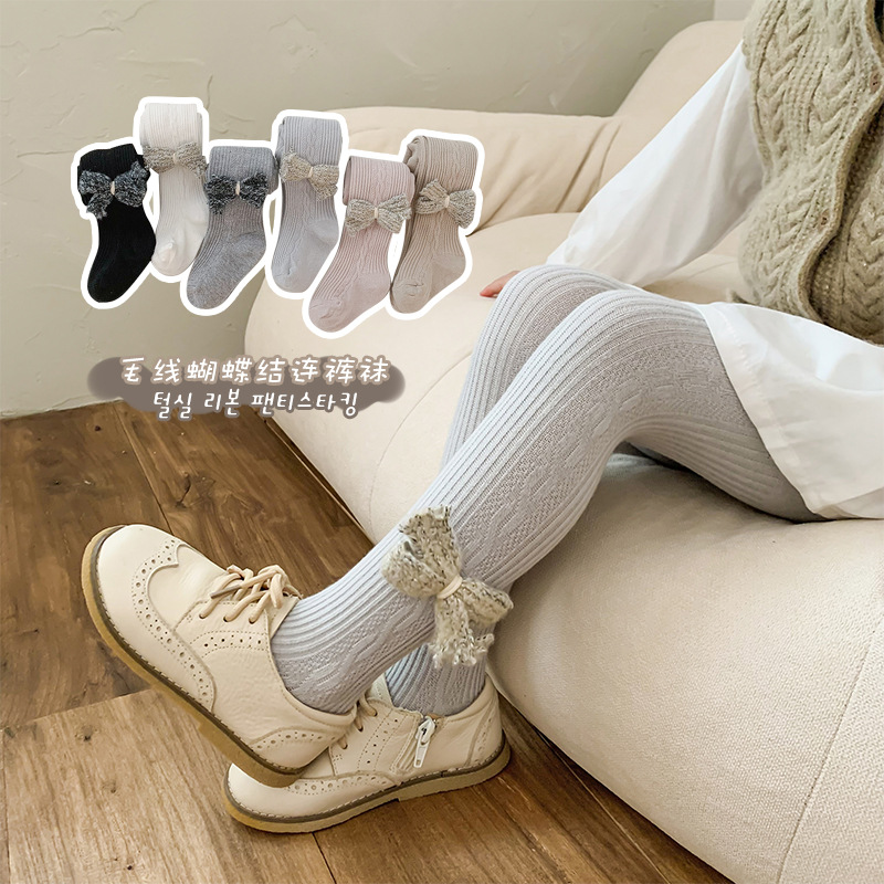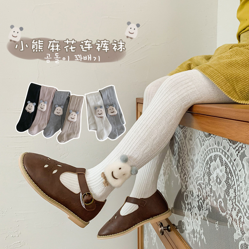 2022秋の赤ちゃんの側の8字の麻花の子供のタイツの女の子のタイツの熊の薄いタイプのジャカードの靴下の卸売り