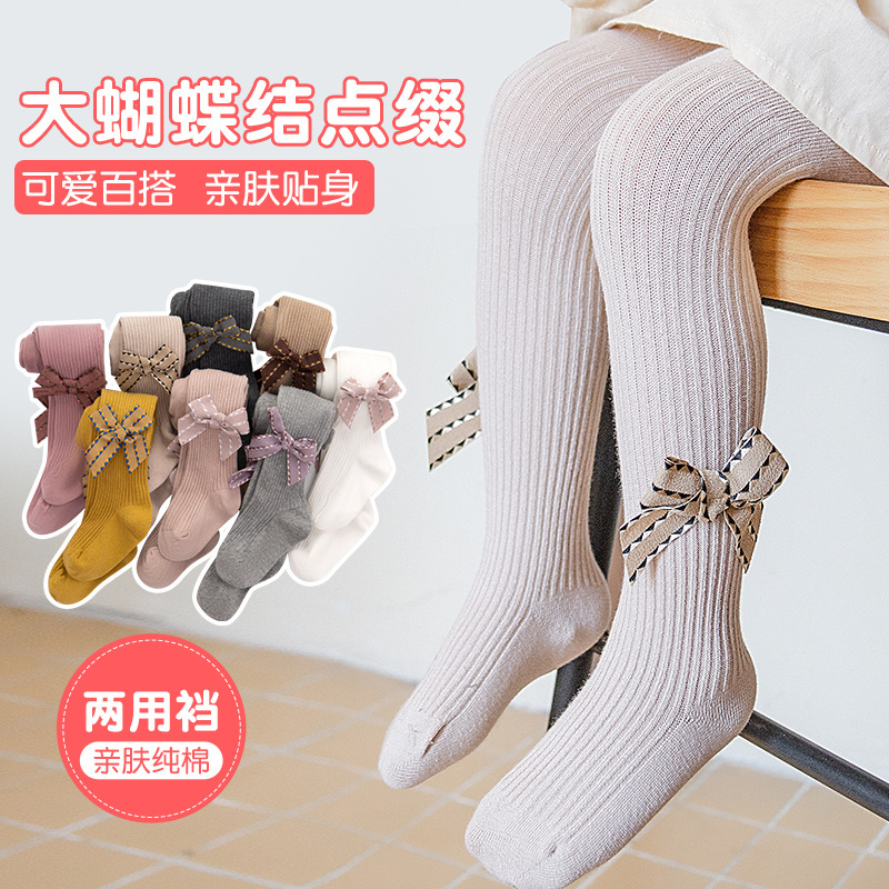 2022新型の大きな蝶結びの縦縞と足のa類の薄いタイプの秋の赤ちゃんとa類の韓国版の子供の線