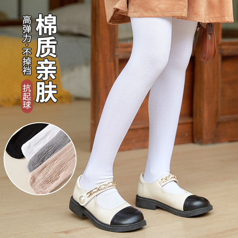 秋の金の中で子供の純色の弾力綿の白いダンスの靴下の子供は底を打って靴下のズボンまで滑り止めて底の靴下のズボンを打ちます。