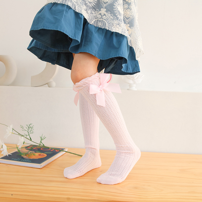 22春夏の新しい女の子の靴下の韓国版の透かし彫りの蝶結びの子供の中でb種類のジャカードの赤ちゃんの綿の靴下はかかとがありません。