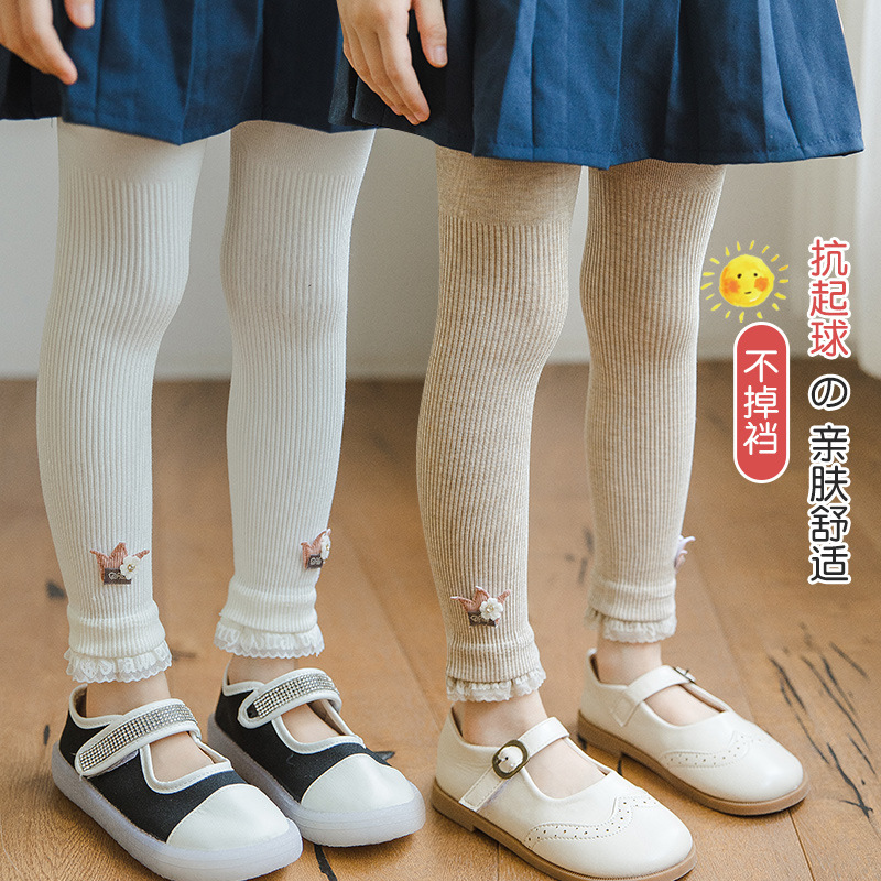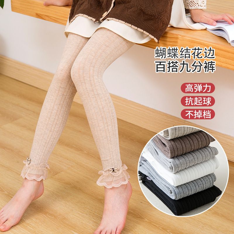 2022新型の韓国版の女の子の精練綿のレギンスの中で大きい子供の修身の縦のレースは股を開けません。