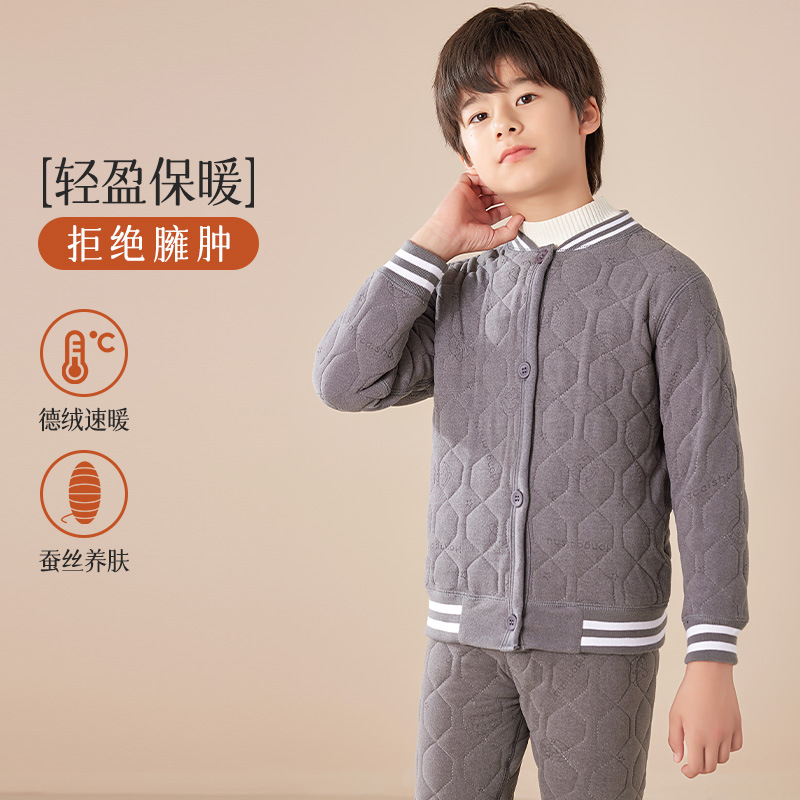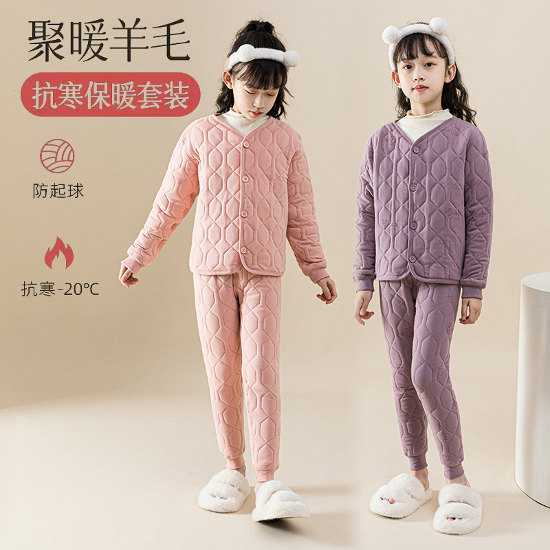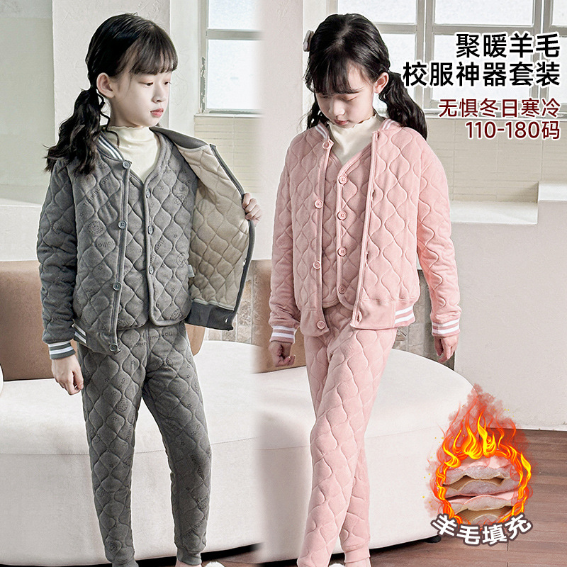 野球服にベルベットをつけて子供のシルク綿の保温下着セット2024の新しい女の子の冬の制服の神器を厚くする