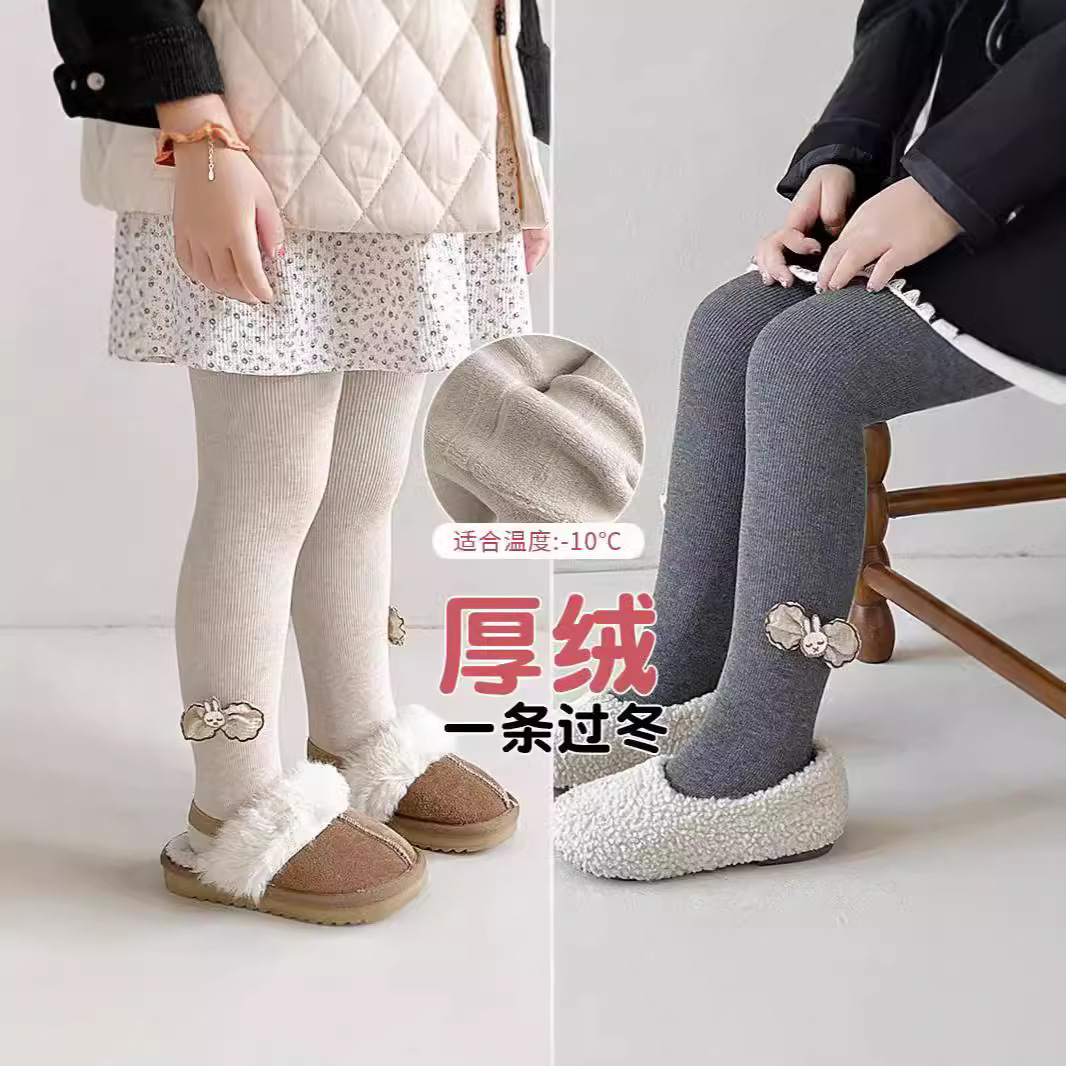 女の子のレギンスとベルベットの厚い秋冬の保温一体ズボンの縦縞のウサギの蝶結びの子供の靴下