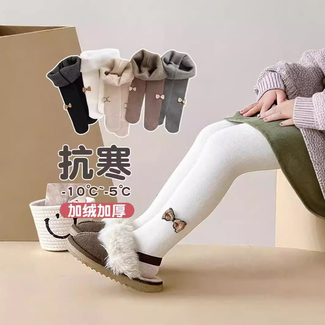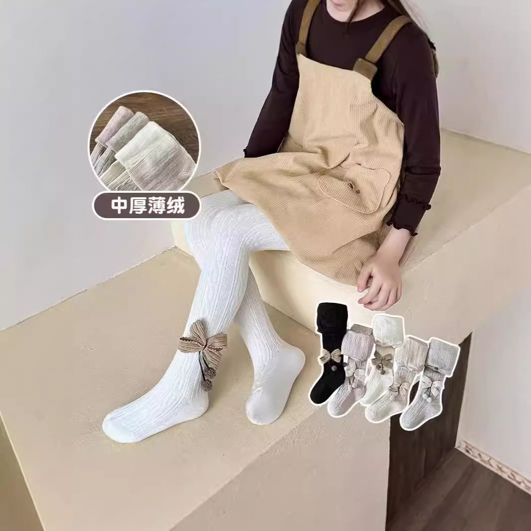 2024秋冬タイプの子供用レギンスの外にニットの女の子を着て、ズボンの靴下の蝶結びの小さい子供の赤ちゃんの靴下が湿っています。