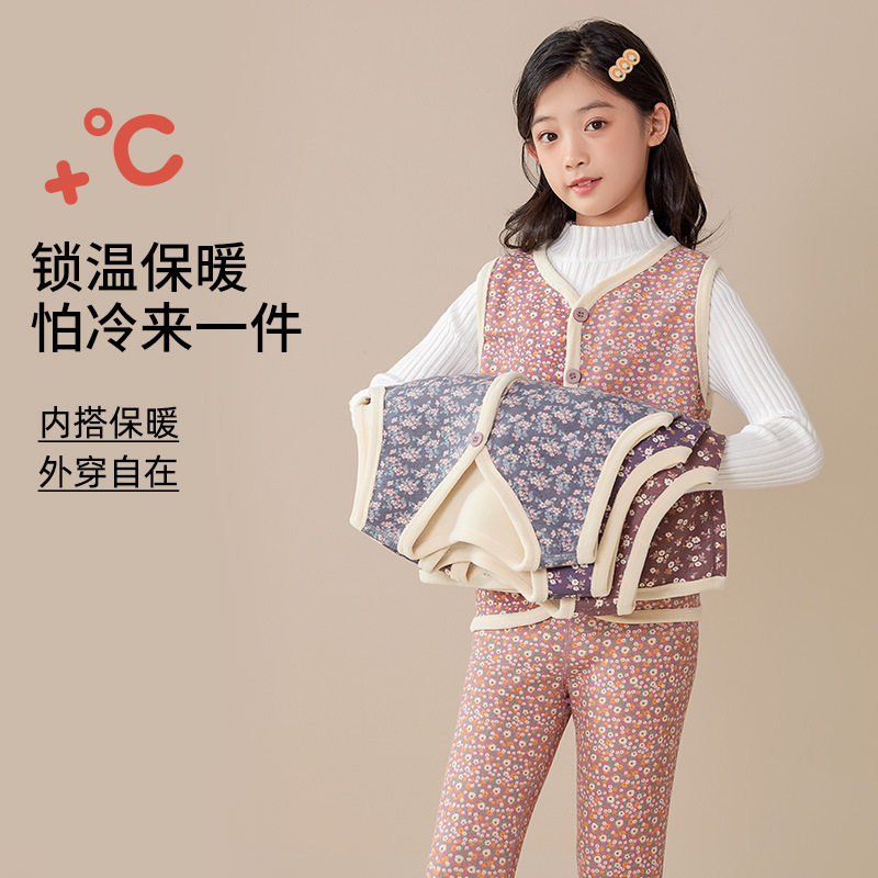 女の子の制服の神器の綿服のスーツの秋冬の24新型の子供の中は綿入れの綿入れのズボンの保温のズボンの内の肝っ玉のベストを掛けます。