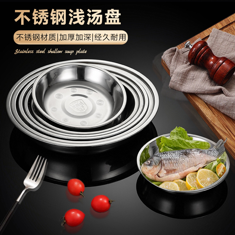 大きいサイズの厚い304ステンレスの皿の料理の皿の深皿の皿の平皿の食器の皿の魚のスープの皿の円盤の食事の皿
