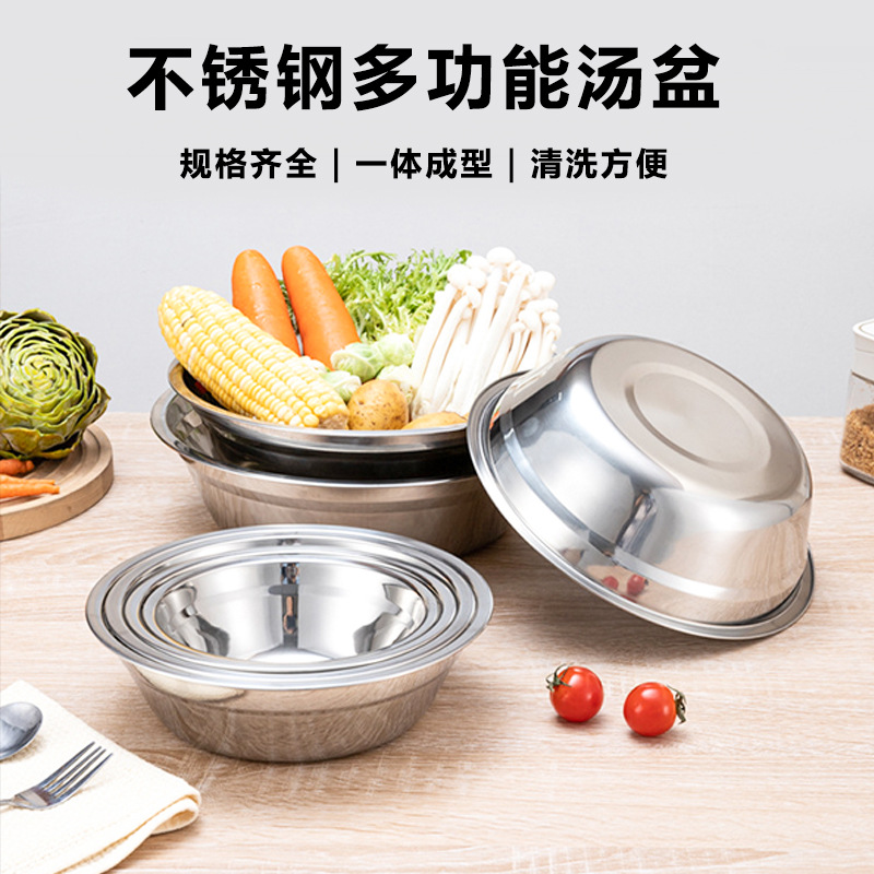 ステンレスのスープの鉢の丸いスープの碗の食堂は料理を盛って食事のたらいの台所で卵のたらいと洗面器を打って野菜のたらいを配合します。