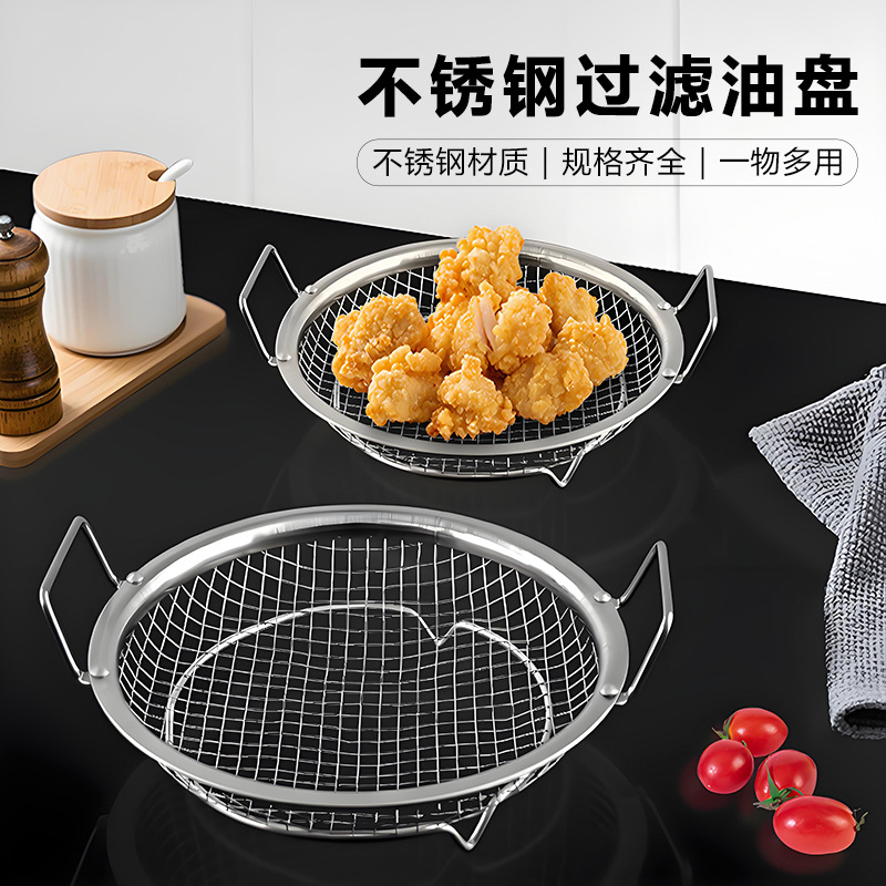 ステンレス鋼オイルフィルタープレートラウンドトレイ排水バーベキュー家庭用キッチンフルーツ排水ネット肥厚フライパン