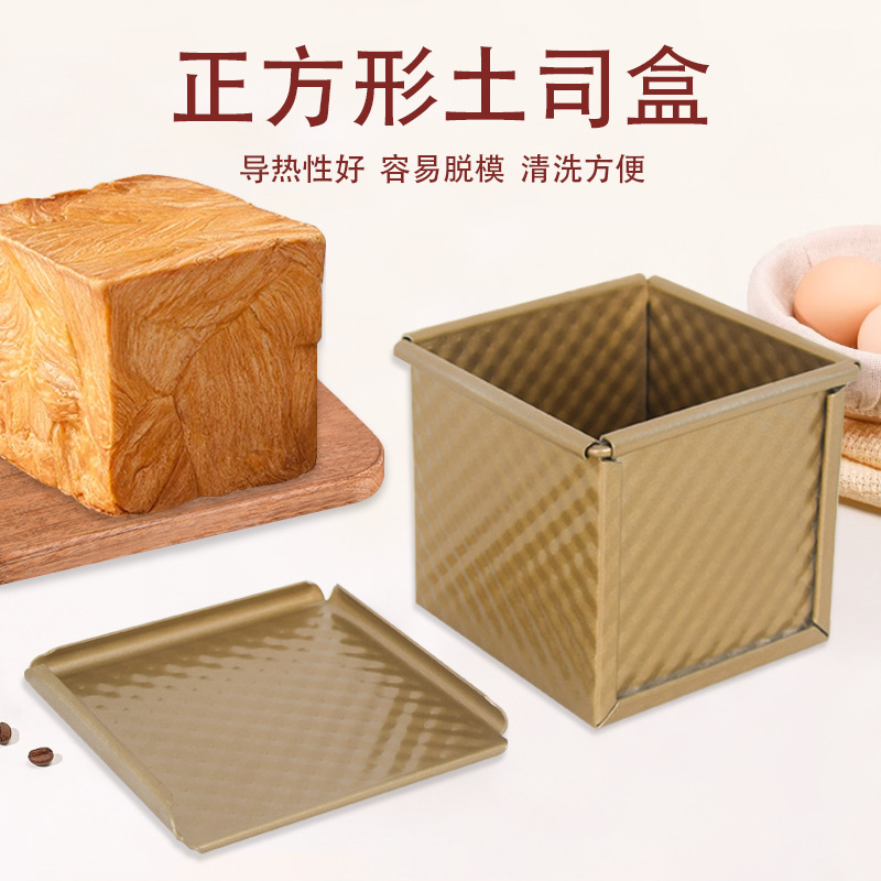 パン金型正方形ゴールデンノンスティックトーストボックスベーキング蓋付き波紋水立方アルミトーストボックス