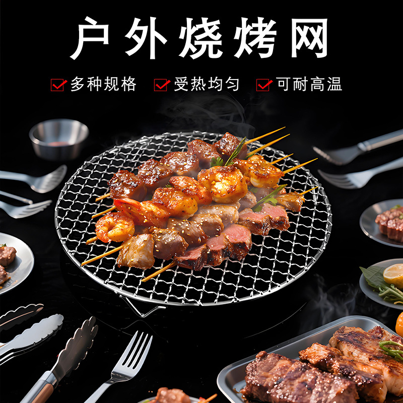 屋外ステンレス鋼ラウンドバーベキューネット足付きエアフライヤーラック排水ネットグリッド蒸しラックバーベキューオーブンネット