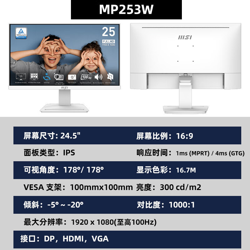 MP253W 25インチ100HZ商用IPSパソコン液晶ディスプレイスクリーンDP/HDMI内蔵オーディオ