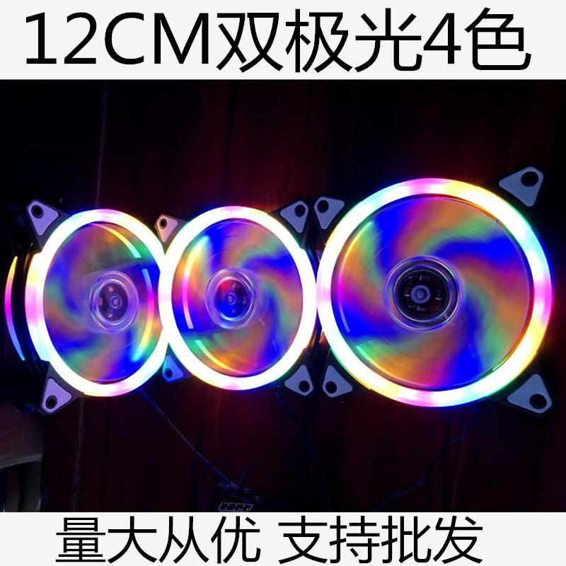 12cmダブルオーロラ4色両面発光ledコンピュータケース電源静音放熱イルミネーションファン卸売り