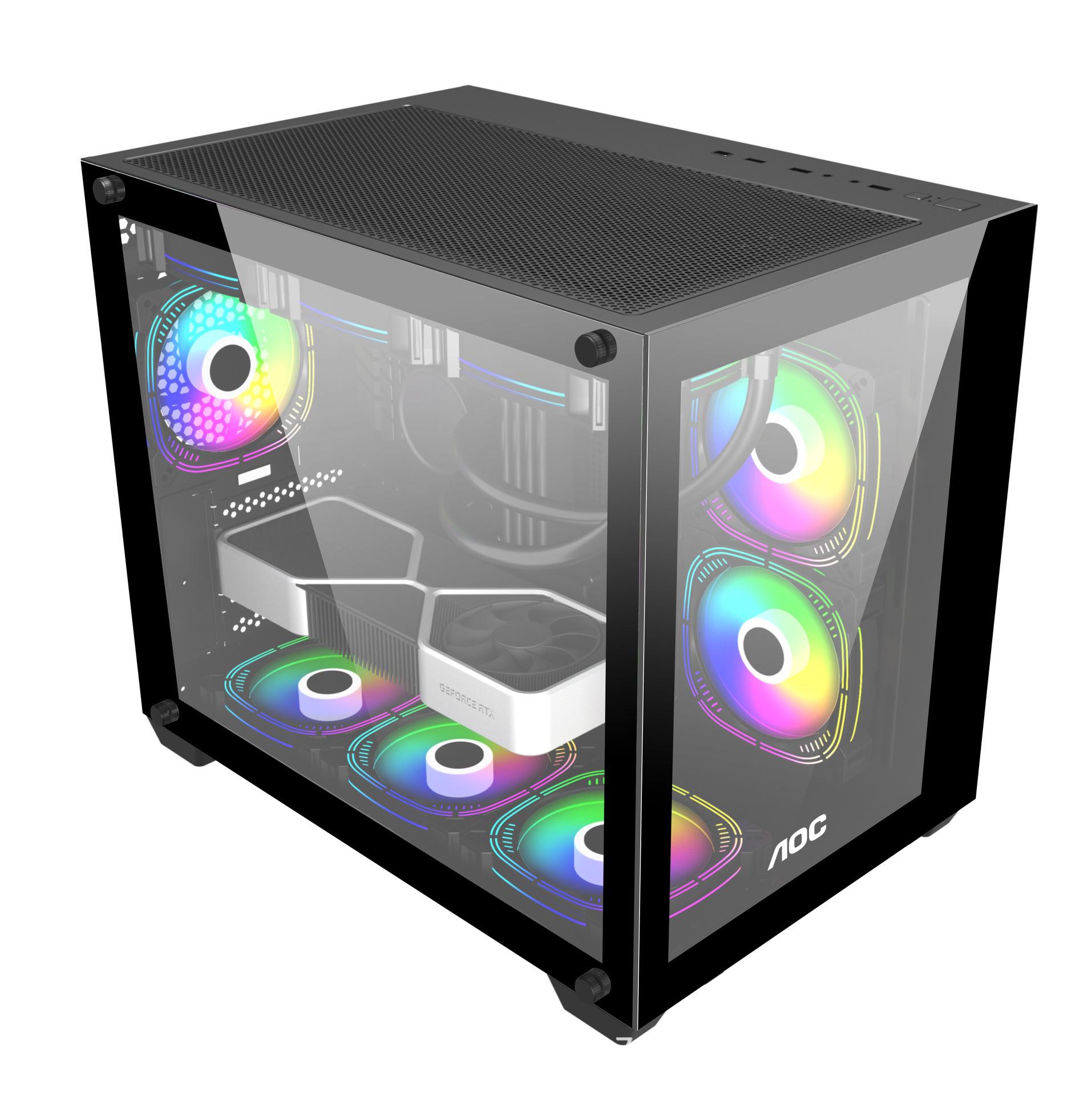 AOC シービュールームシャーシデスクトップホストコンピュータ ATX360 水冷サイド透明 argb ファン垂直スポット