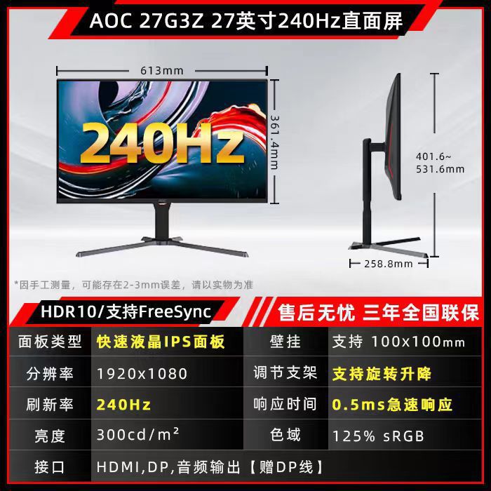 AOC 27G3Z 27 インチ 2K HD 240Hz IPS HD ゲーミング e スポーツ モニター垂直回転