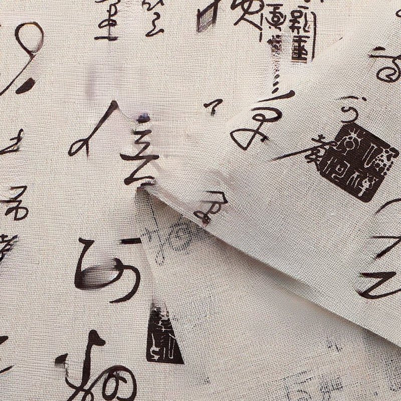 卸売り古風書道プリント綿麻風生地水墨テーブルクロス抱き枕ソファー生地手作り麻生地