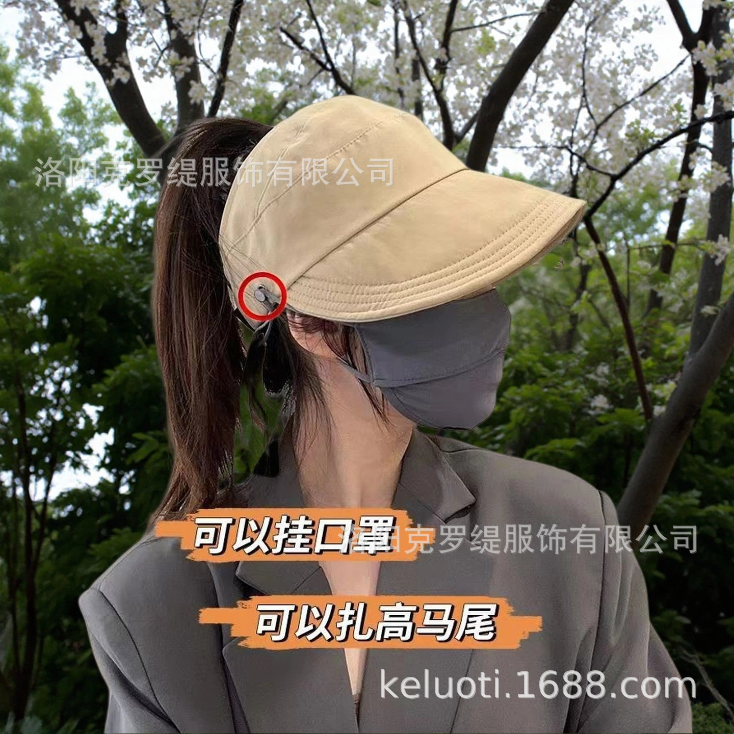 女性用夏用日よけ帽子 2024年 サンハット つばなし ハイポニーテール対応 マスク付き 調整可能サイズ