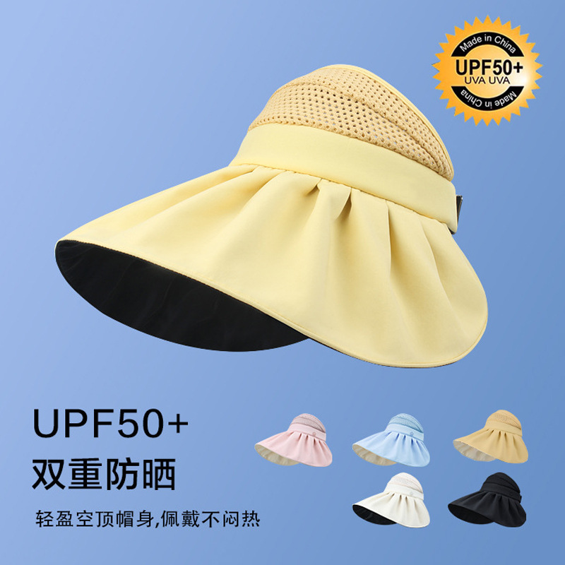 空のトップの日焼け止め帽子の女性のタイプの夏の紫外線防止の屋外の騎乗の日よけの大きいつばは顔の桃の心の太陽の帽子の潮を遮ります。