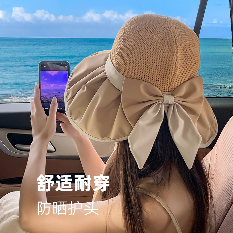 新作春夏日よけ帽子レディースアウトドア大きなひさし日焼け止め帽子ファッション蝶結びビーチ帽子漁師帽子代発