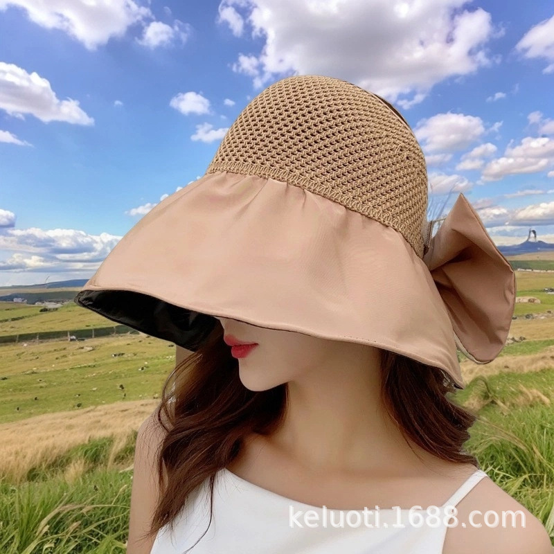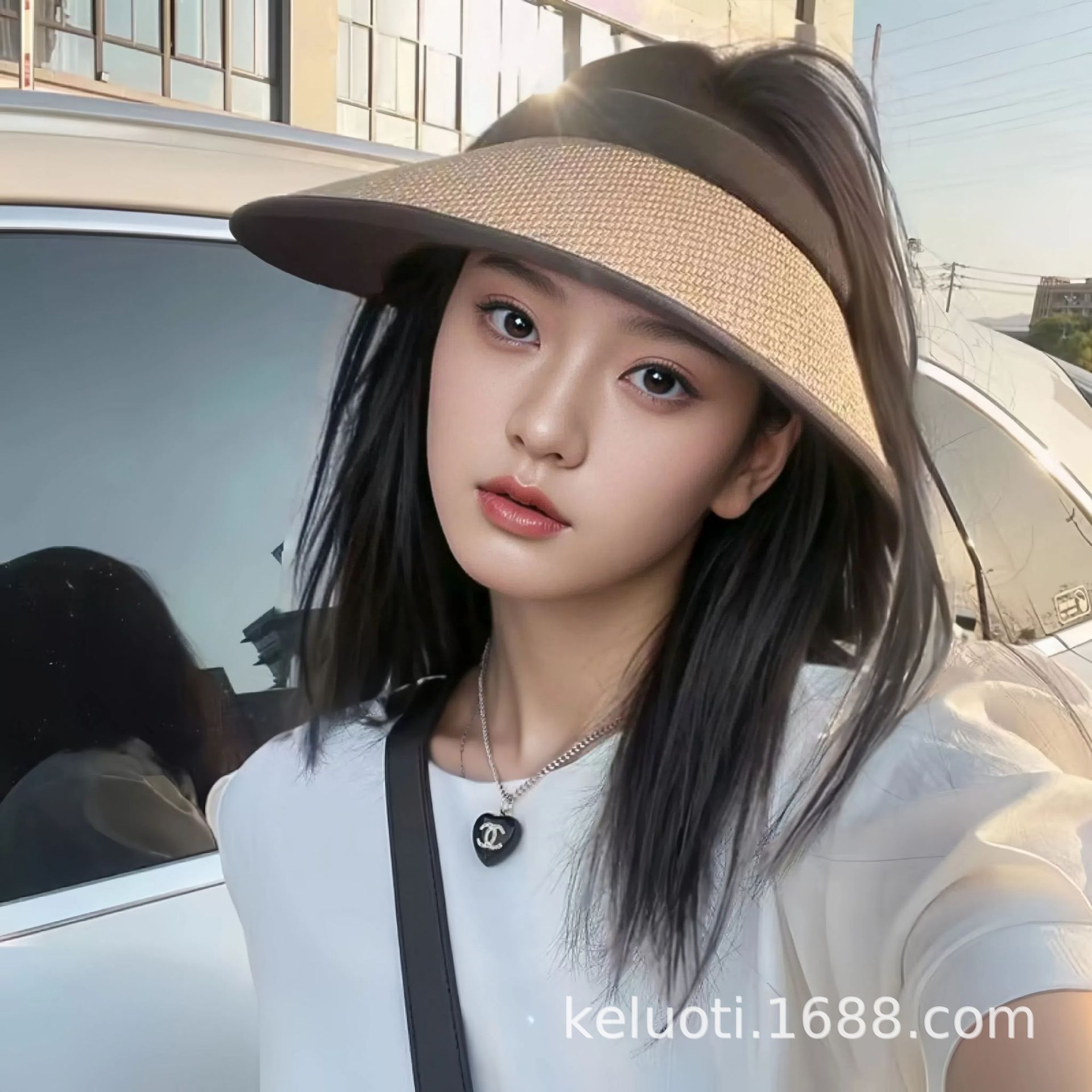 2024日よけ日焼け止め帽子女性代発顔空頂麦わら帽子新型夏の大きなつば紫外線防止太陽帽